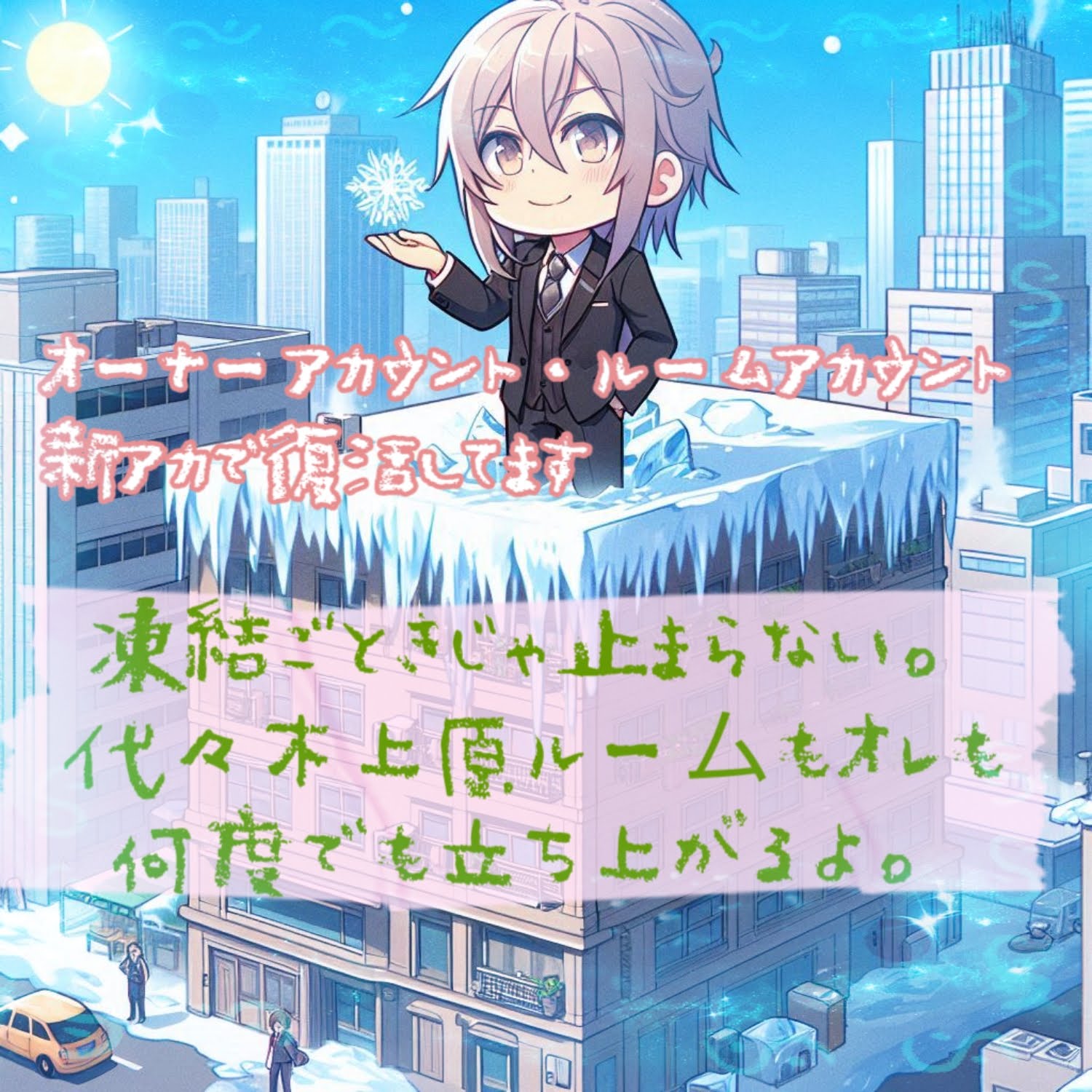 2024/11/26 | 「天界のスパ」またまた凍結により新アカお知らせ。分かりにくいけど氷上にいます。新しいのはまだ凍ってないアピール |