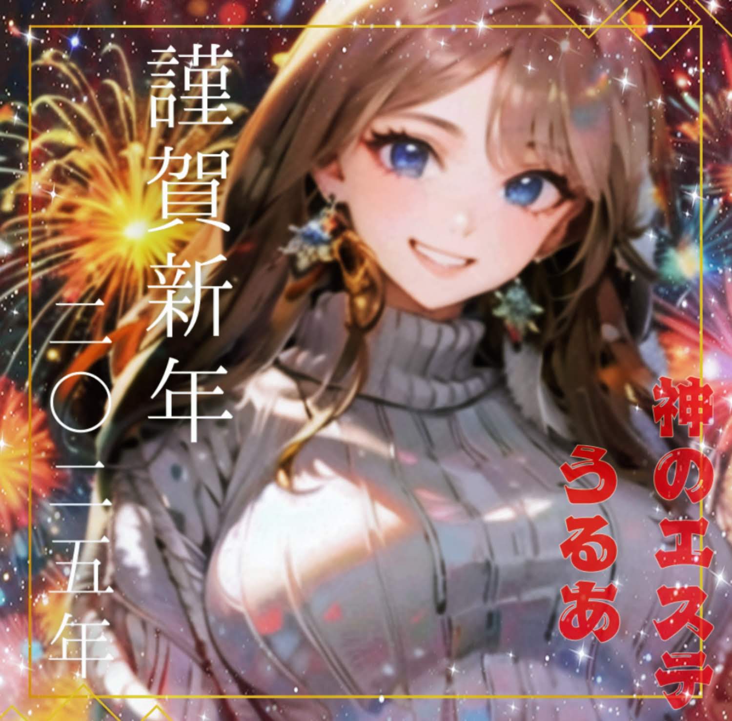 2025/01/08 | 神エス「うるあ」ちゃん紹介イラスト。時期的に新年挨拶兼ねての作品。ヘッダーにも使ってくれたのでリサイズ版もお渡ししました |
