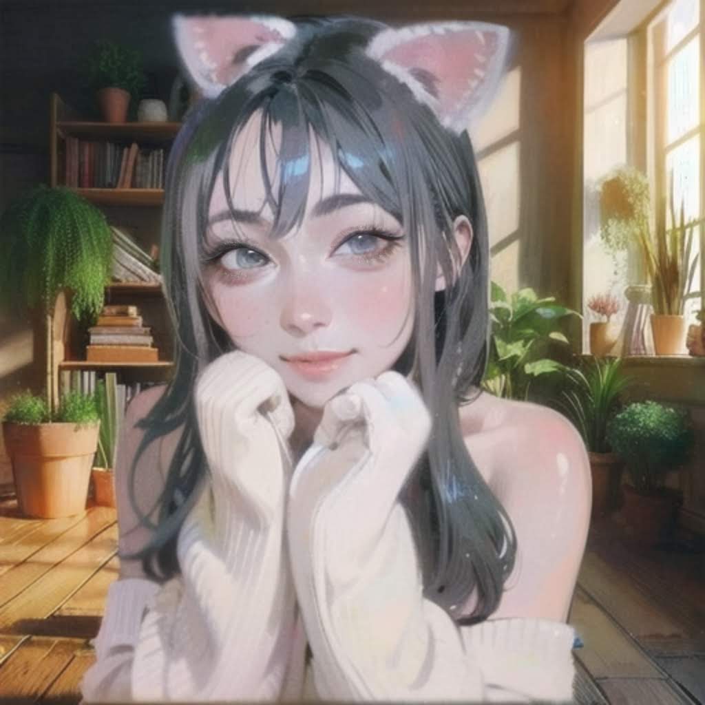 2024/6/15 | ヘッドスパも得意とプロフを見てイメージした「つき」ちゃん。可愛い猫顔なので猫も使いました |