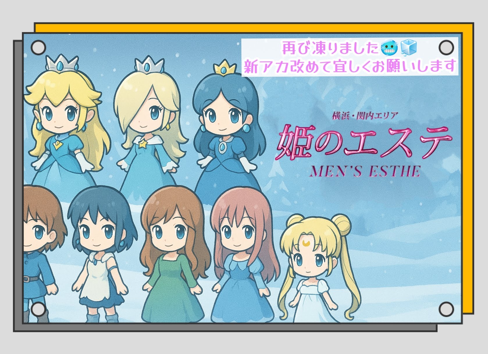 2025/06/13 | よろず屋コラボをした「姫のエステ」再凍結のため前回のバナー風を氷の世界風にリアレンジ。凍結を誘発したいものではないです。 |